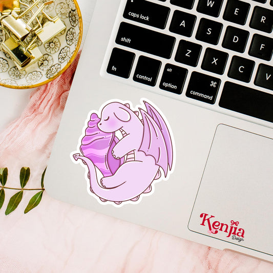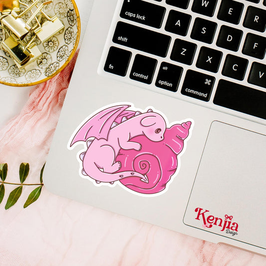 Cute Pink Dragon Sticker / Baby Dragon Lover Gift / Bookish sticker / Fantasy Readers / Summer Seashell / Beach Vibe / Coastal Sea Life