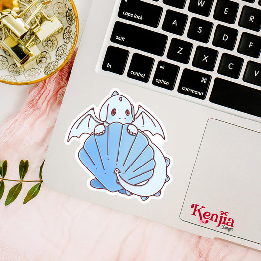 Cute Blue Dragon Sticker / Baby Dragon Lover Gift / Bookish sticker / Fantasy Readers / Summer Seashell / Beach Vibe / Coastal Sea Life