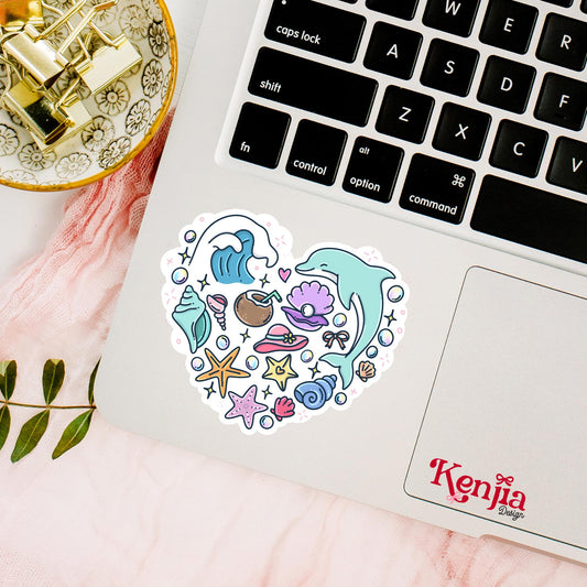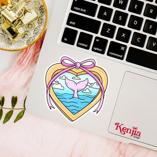 Whale Tail Stickers / Coquette Bow Ocean Sticker / Girly Heart Locket / Beachy Aesthetic / Sea Lover Gift / Mermaid Sticker / Sea Life