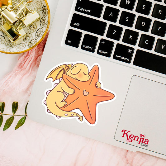 Cute Orange Dragon Sticker / Baby Dragon Lover Gift / Bookish sticker / Fantasy Readers / Summer Seashell / Beach Vibe / Coastal Sea Life