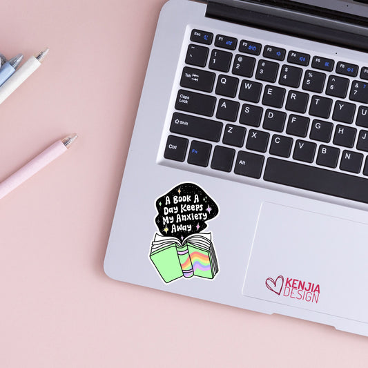 A Book A Day Keeps My Anxiety Away Stickers / Trendy Bookish Stickers Merch / Book Lover Gifts / Introvert Kindle Stickers