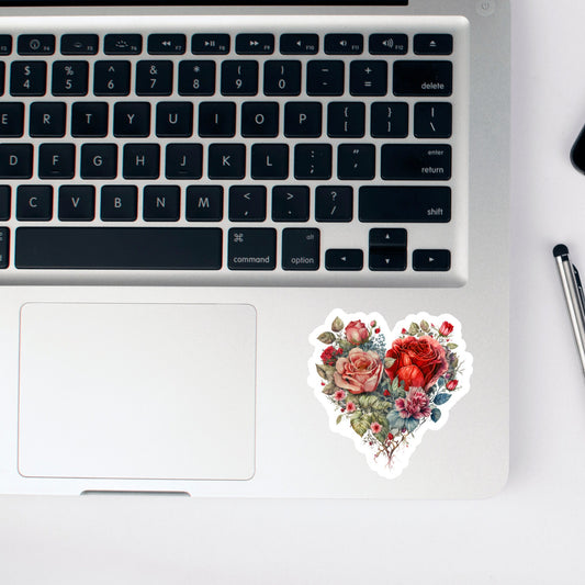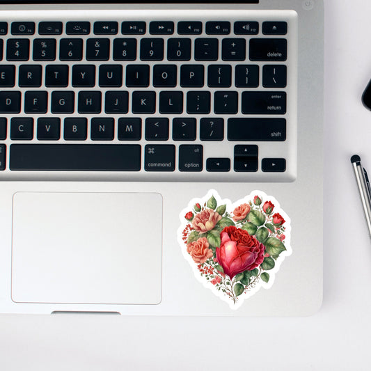 Beautiful Vintage Floral Heart, Waterproof and Dishwasher Safe Handmade cute Vinyl Sticker for gift, planner, book and laptop stickers