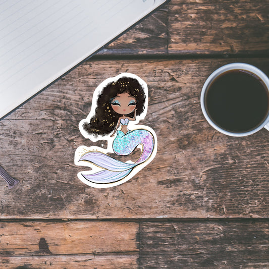 Black Mermaid Sticker with Brown Hair, Cute Girly sticker, Waterproof Dishwasher Safe Handmade Vinyl Sticker gift, planner, laptop stickers