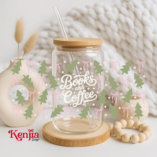 Books And Coffee 16 OZ Glass Can With Lid & Straw / Booktok / Book Lover Gift / Water Bottle / Bookish Merch / UV Dtf Libbey Wrap Transfert