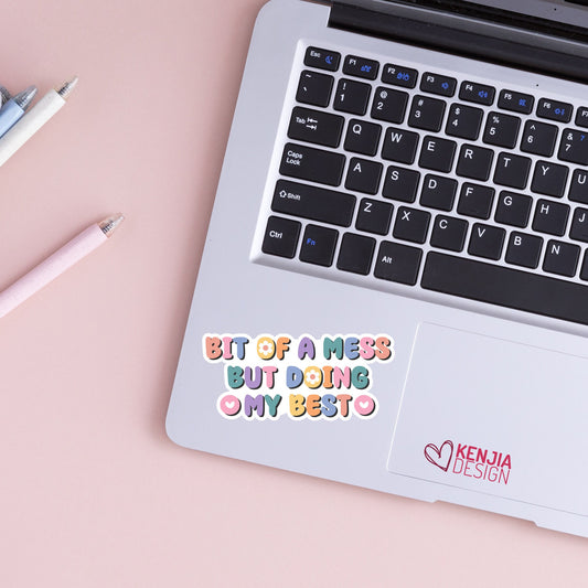 Bit of a Mess But Doing My Best Stickers Cute Retro Mental Health Gifts, Self Care, Self Love Mom Sticker, Trendy Stickers