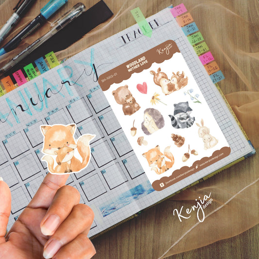 Woodland Baby and Mother Animal Sticker Sheet, Handmade cute Vinyl Sticker for gift, planner, book and laptop stickers