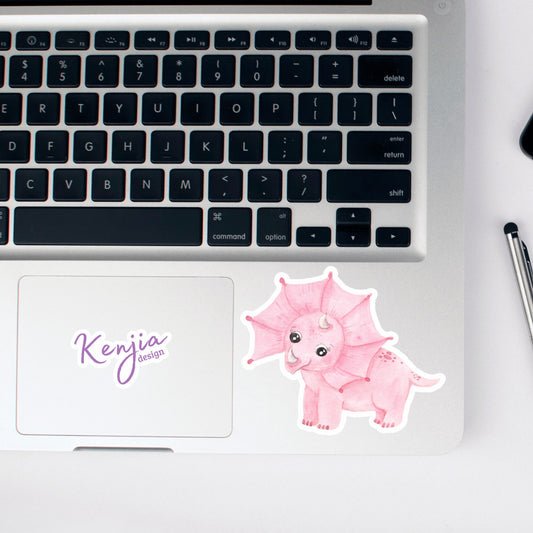 Cute Handmade Pink Dino Girl Sticker, watercolor effect, Waterproof and Dishwasher Safe Vinyl Sticker for gift, planner, book, laptop