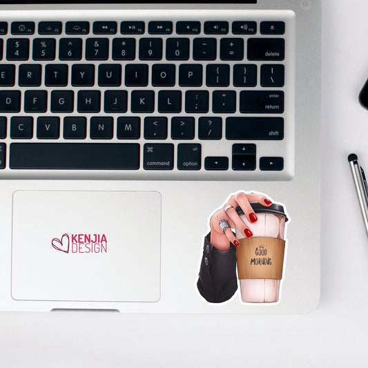 Funny Cute Good Morning Coffee Stickers | Dark and Fair Skin Tone Waterproof Sticker, Planner Laptop Water Bottle Bumper Sticker