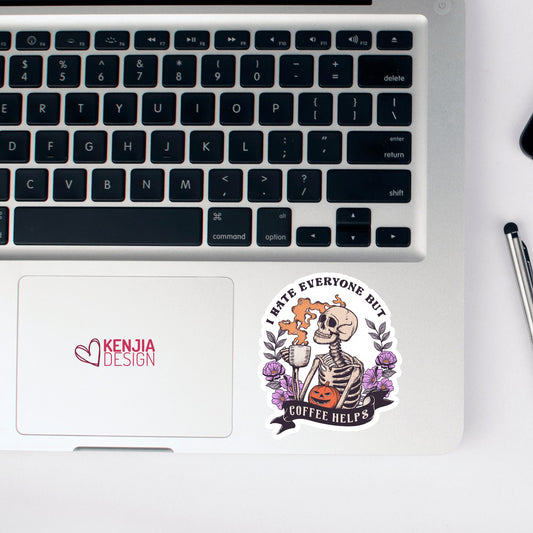 Funny Halloween Skeleton Coffee Stickers Spooky Skull | Waterproof Sticker for Kindle Planner Laptop Water Bottle Fridge Magnet