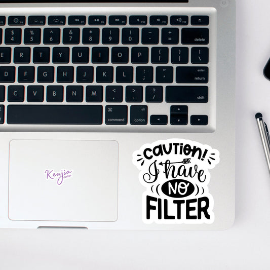 Caution I Have No Filter Sarcastic Sticker, Waterproof and Dishwasher Safe Handmade cute Vinyl Sticker for gift, planner, book and laptop