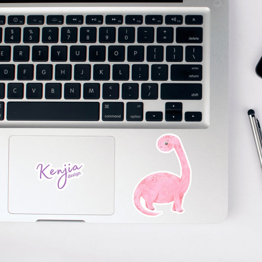 Cute Handmade Pink Dino Girl Sticker, watercolor effect, Waterproof and Dishwasher Safe Vinyl Sticker for gift, planner, book, laptop
