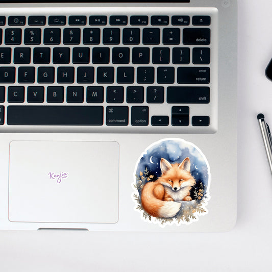 Cute handmade Fox Sticker and Magnet with Flowers and Moon, Watercolor Style, Waterproof Vinyl for gift, planner, book, laptop stickers