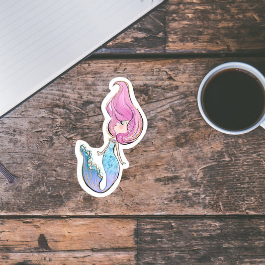 Mermaid Sticker Pink Hair, Cute Girly sticker, Waterproof Dishwasher Safe Handmade cute Vinyl Sticker gift, planner, book, laptop stickers