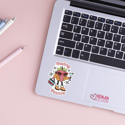Feeling Festive Strawberry Christmas Stickers / Holidays Decals / Christmas Vibes / Berry Laptop & Kindle Stickers