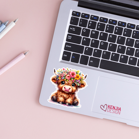Cute Baby Highland Cow Stickers / Floral Farm Animal Lover / Cute Fluffy Calf / Farm Life / Moo Moo Scottish Cow Laptop & Kindle Stickers