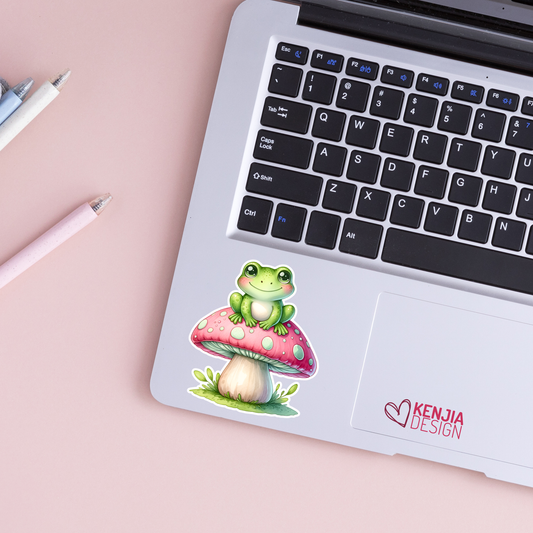 Cute Frog and Mushroom Stickers / Frog on Mushroom / Waterproof Vinyl Animal Sticker / Aesthetic Summer Stickers / Laptop & Kindle Sticker