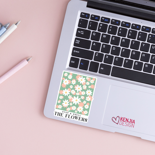 Stop & Smell The Flowers Stickers / Floral Self Care Stickers / Mental Health Waterproof Vinyl Sticker / Retro Aesthetic Flowers Decal