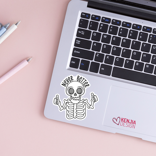 Never Better Skeleton Stickers / Sacrastic Dead Inside Gifts / Funny Halloween Skull Mental Health Mom Stickers