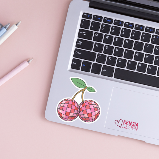 Cherry Disco Ball Stickers / Retro Groovy Dance Party Cherries / Pink Aesthetic Stickers / Fruit Waterproof Vinyl Stickers / Funky Art