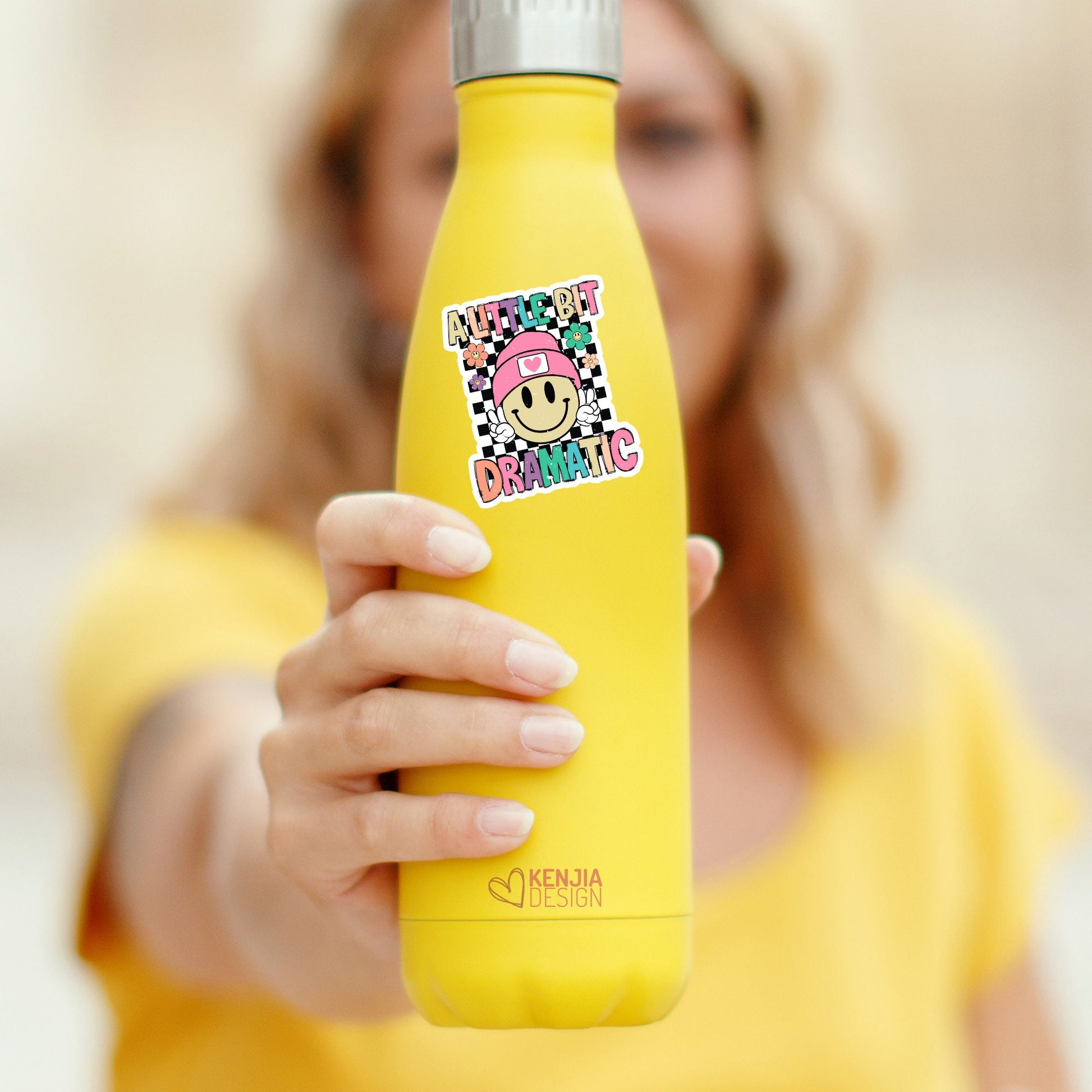 ♡ A Little Bit Dramatic Retro Stickers and Magnets - Cute Groovy Smiley Face / Little Toddler Girl Gifts / Kids Life / Anxiety Drama Queen Mental Health / Trendy Popular Now