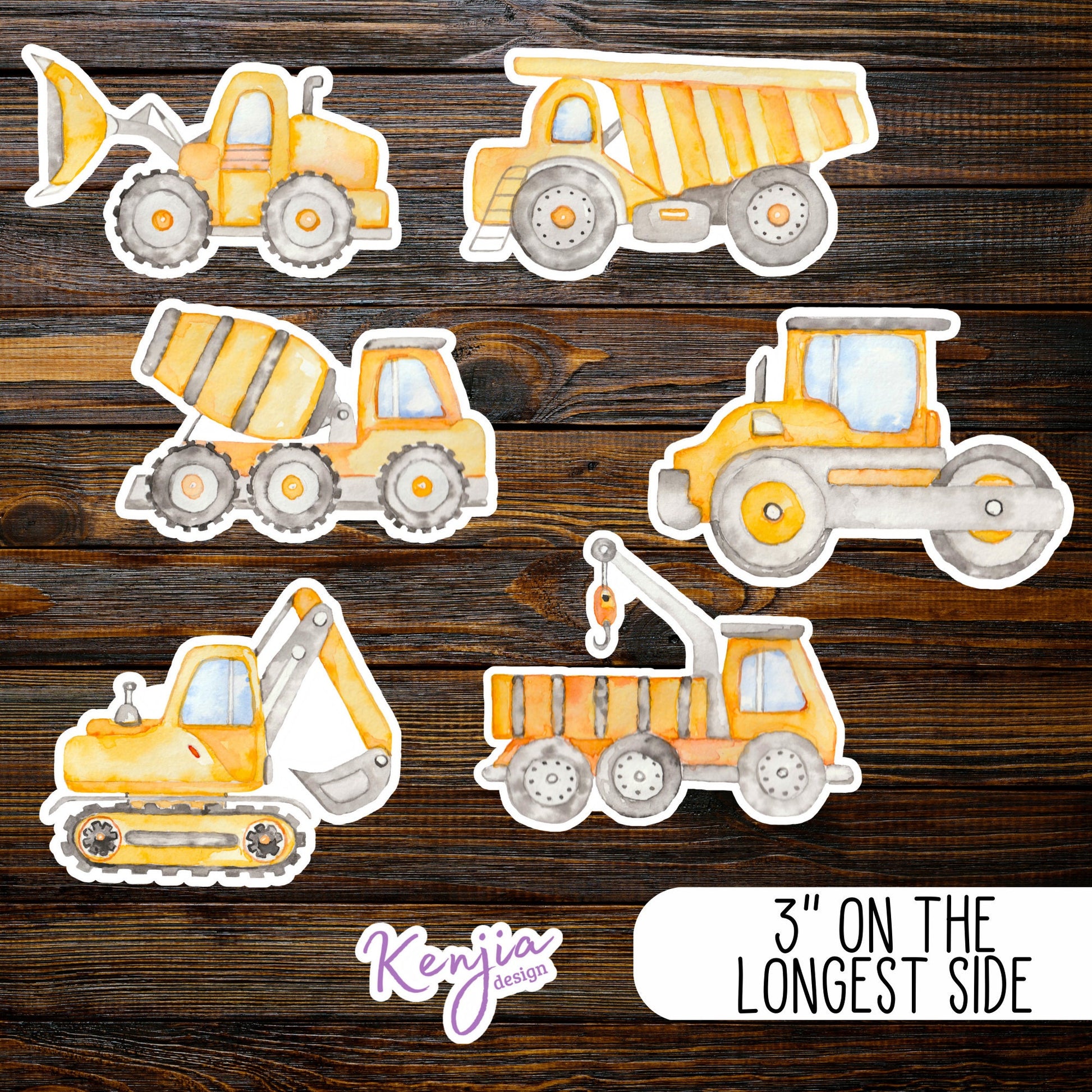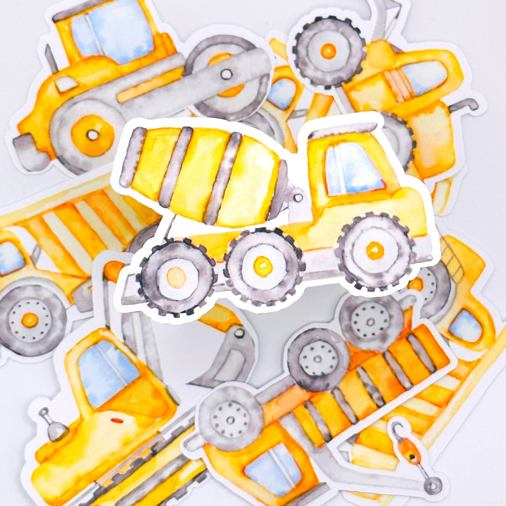 Construction Vehicles Sticker, Waterproof and Dishwasher Safe Handmade cute Vinyl Sticker gift, planner, bumper, laptop stickers