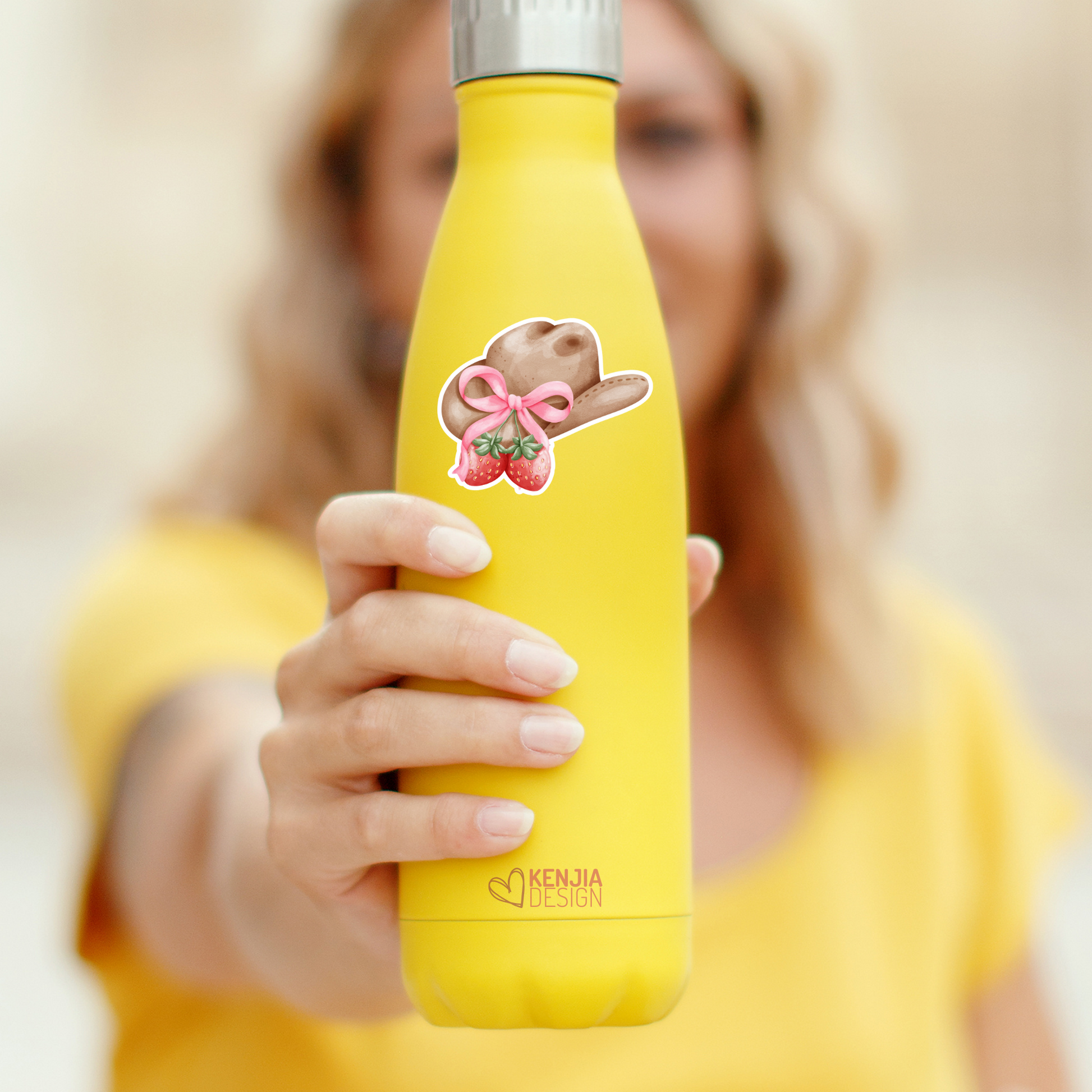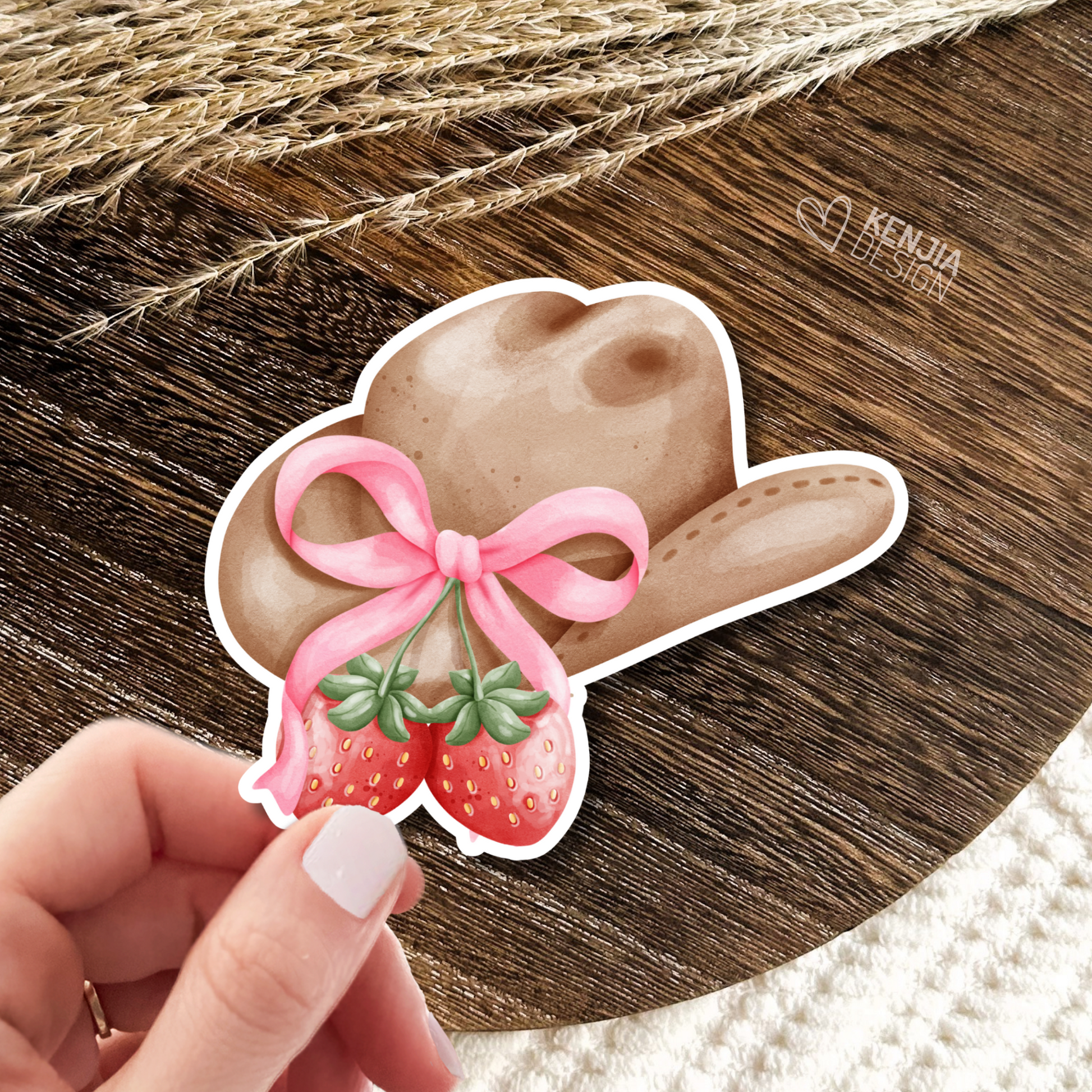 Coquette Aesthetic Cowgirl Stickers / Western Sticker / Cowgirl Hat / Cute Pink Strawberry Bow Ribbon / Girl Gifts / Cowboys Lover