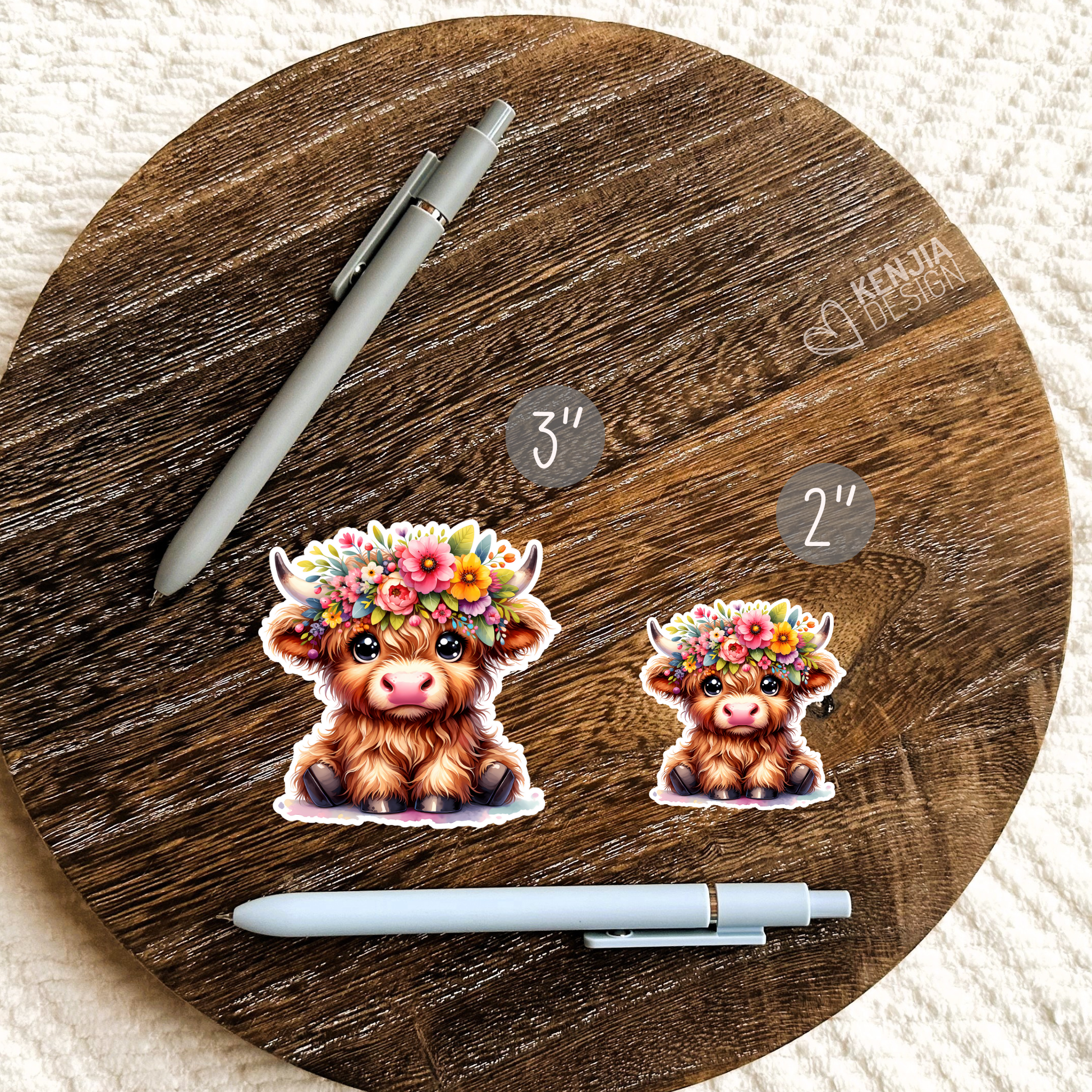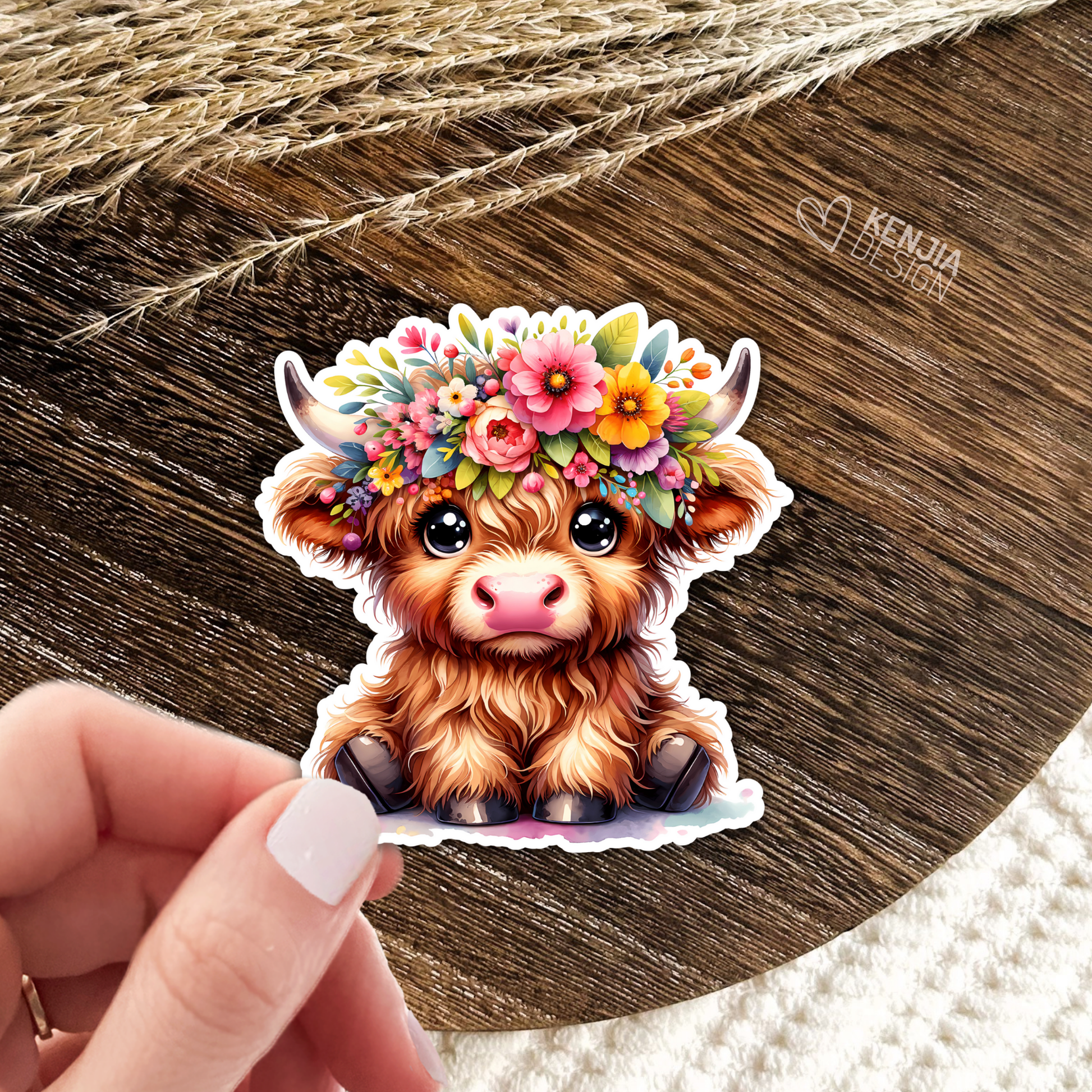♡ Cute Baby Highland Cow Stickers / Floral Farm Animal Lover / Cute Fluffy Calf / Farm Life / Moo Moo Scottish Cow Laptop & Kindle Stickers / Trendy Popular Now