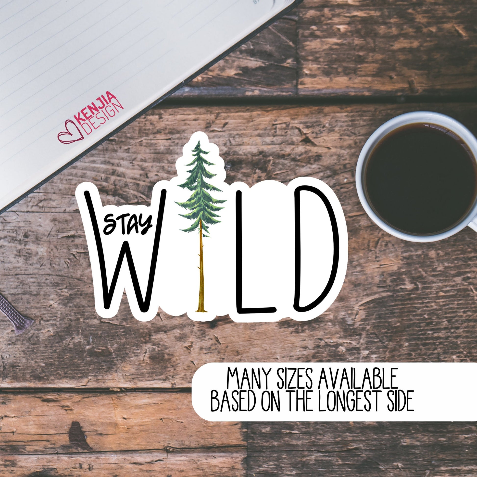 Cute Funny Stay Wild Pine Tree Stickers and Magnets | Watercolor Waterproof Sticker for Planner, Laptop Water Bottle, Bumper Sticker in Vinyl, Notebook, Walls, Mug, Phone Case , Mirrors, Book, Scrapbooking or for your Journal, Card Making and more.
