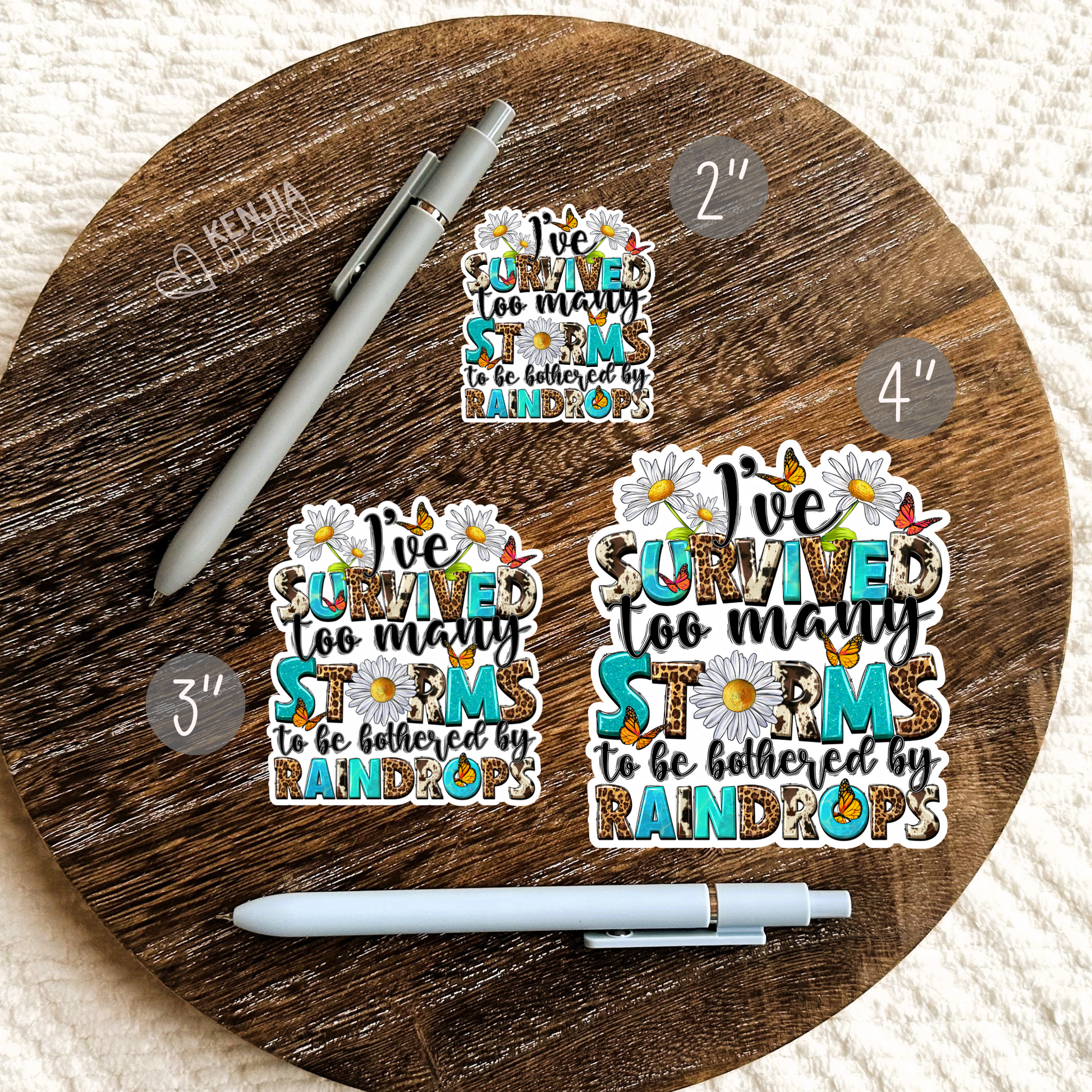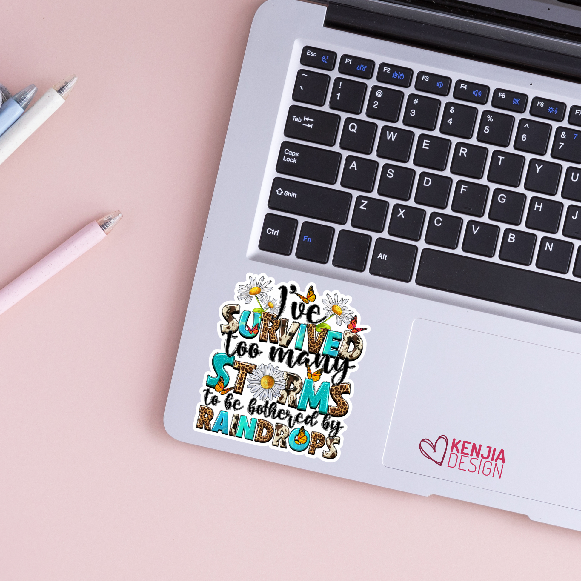 ♡ I've Survived Too Many Storms To Be Bothered By Raindrops Stickers / Inspirational Motivational Quotes / Mom Stickers / Trendy Popular Now