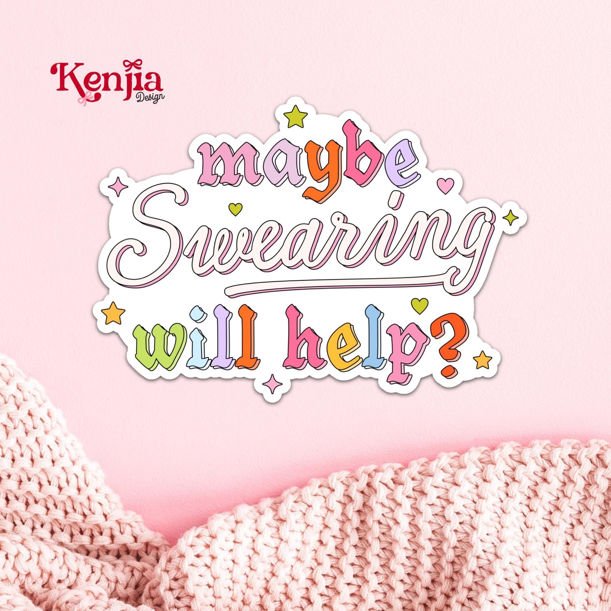 Maybe Swearing Will Help Sticker / Cute Relatable Humor Sticker / Funny Sarcastic Quote / Aesthetic Stress Relief Gift / Adult Humor