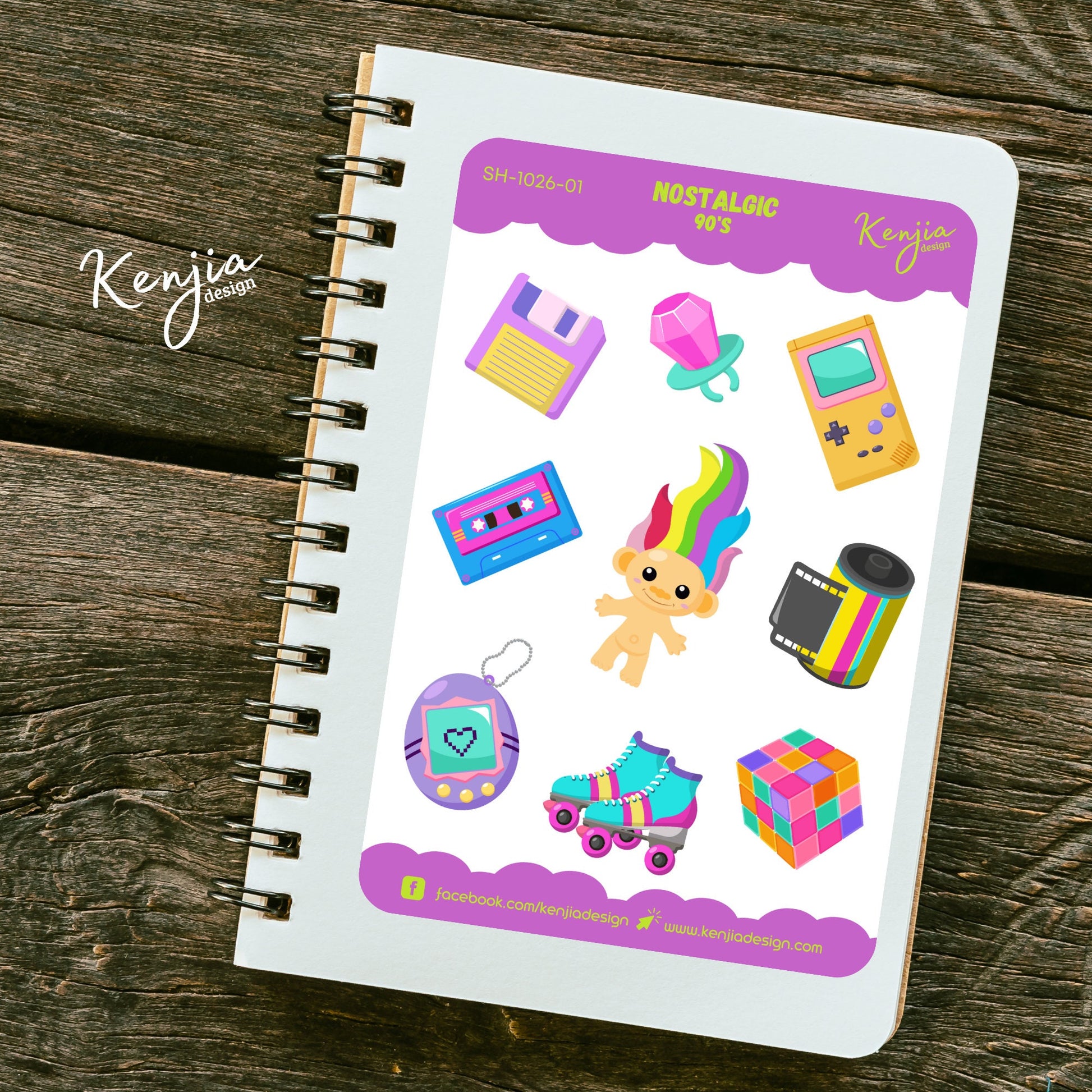 Nostalgic 90's Retro Sticker Sheet, Handmade cute Vinyl Sticker for gift, planner, book and laptop stickers