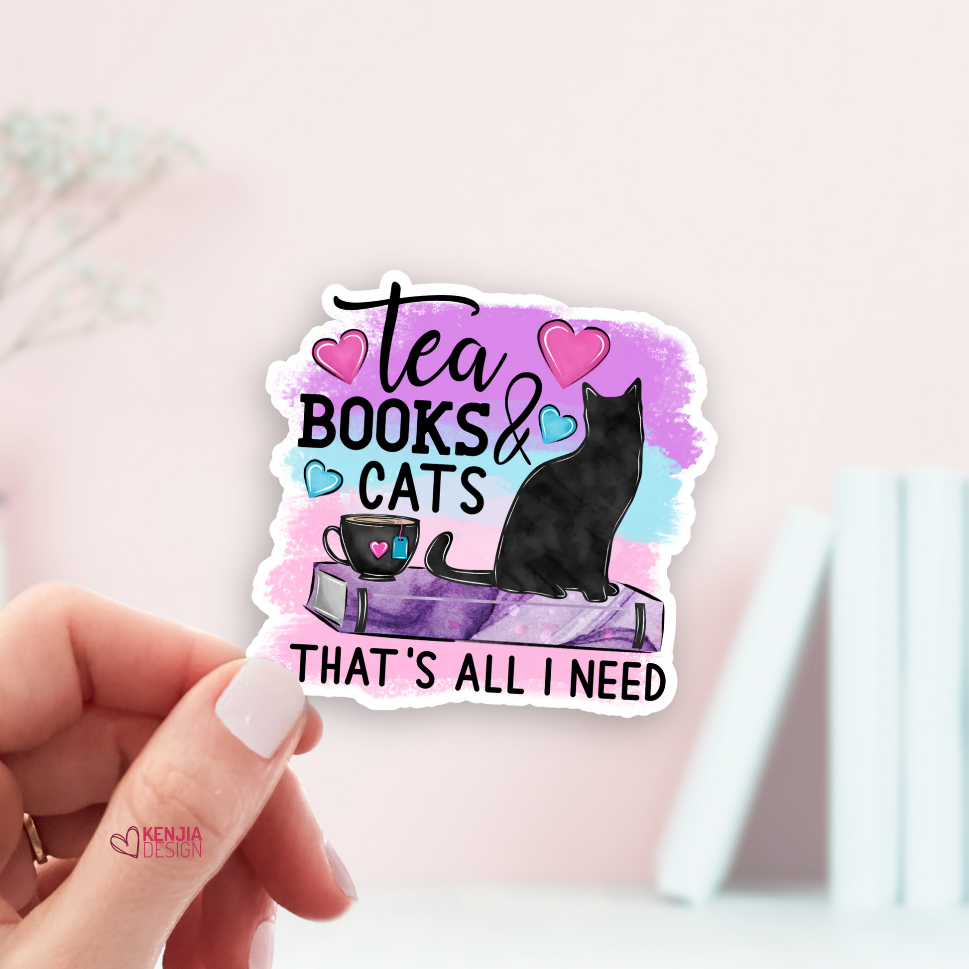 Tea Books and Cats That's All I Need Stickers , Book Lover gift, Bookish Merch, Reading lover, Cat Stickers, Laptop Stickers