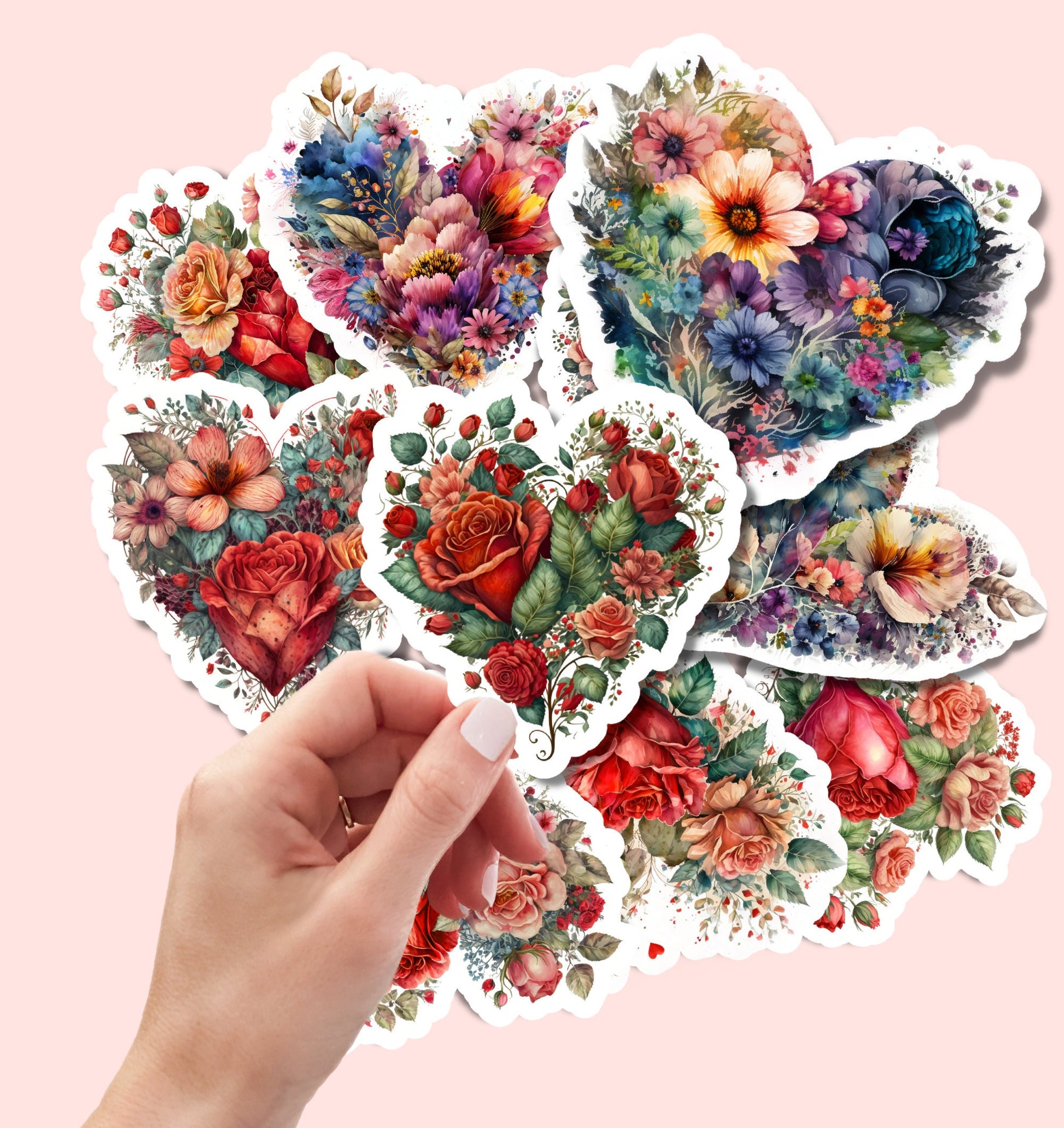 10 pcs Beautiful Vintage Floral Heart sticker Pack, vinyl sticker for Laptop, Notebook, Walls, Water Bottle, Mug, Phone and Case , Mirrors, Book, Scrapbooking or for your Journal, Card Making and more.