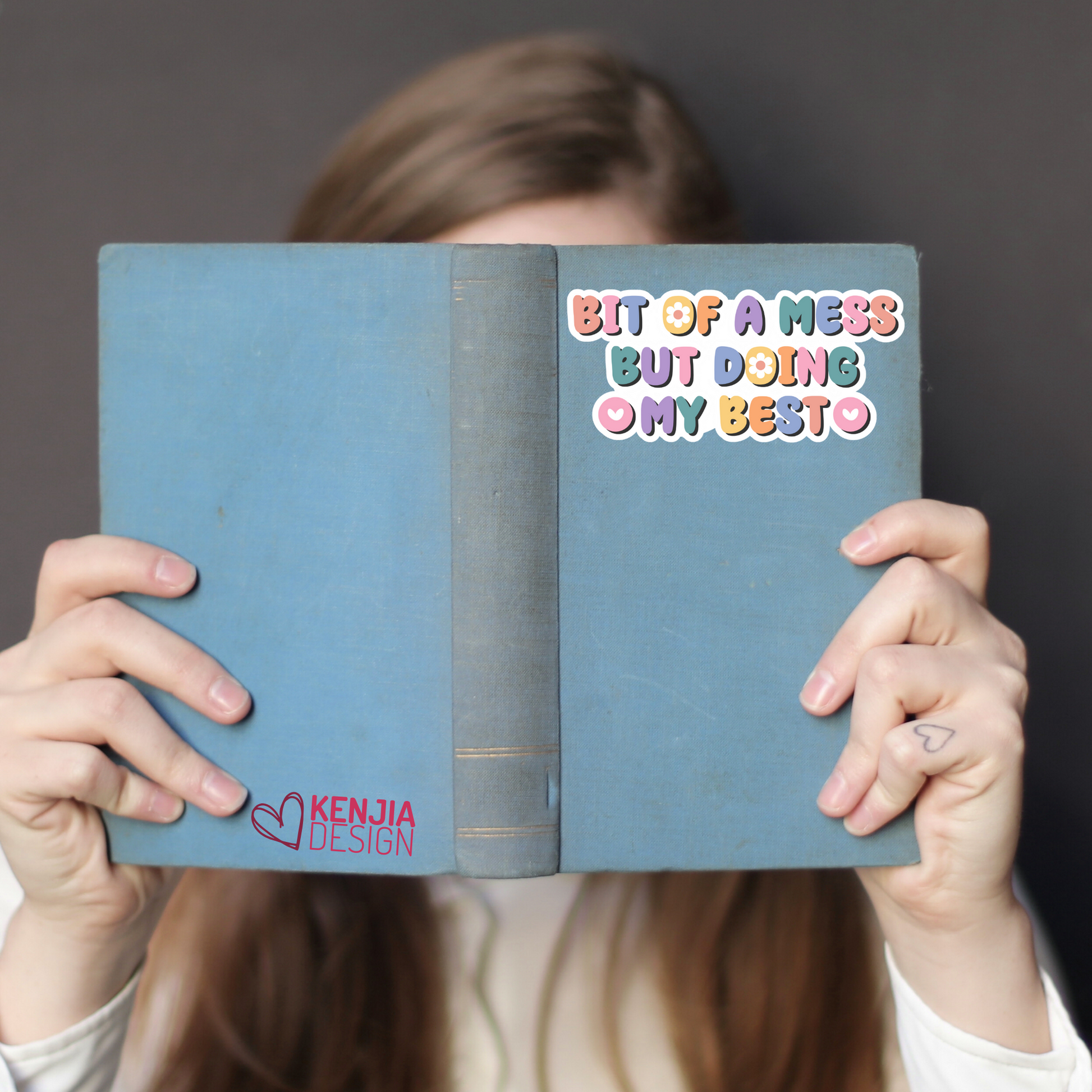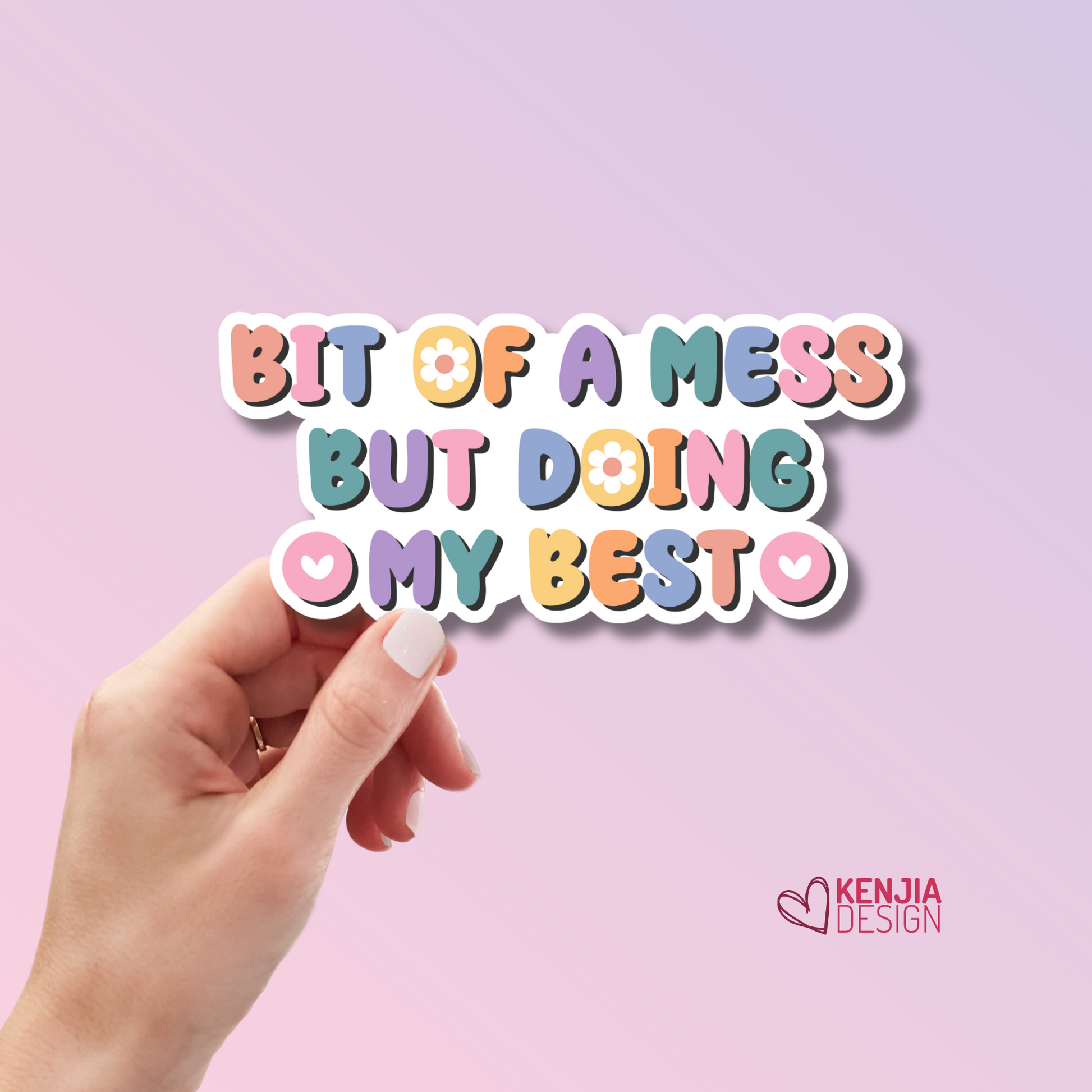 Bit of a Mess But Doing My Best Stickers Cute Retro Mental Health Gifts, Self Care, Self Love Mom Sticker, Trendy Stickers