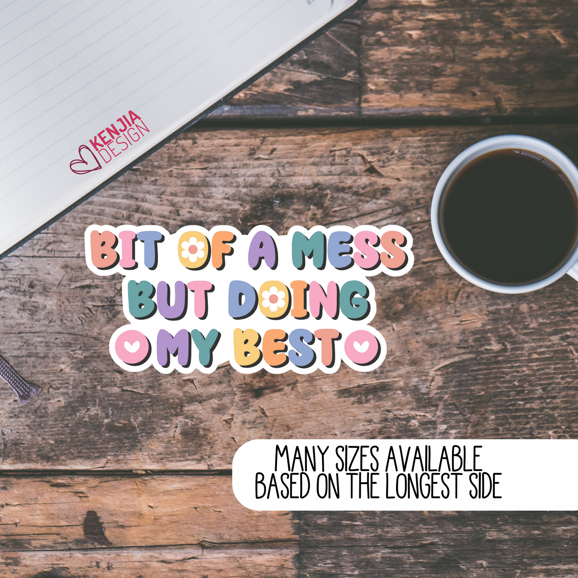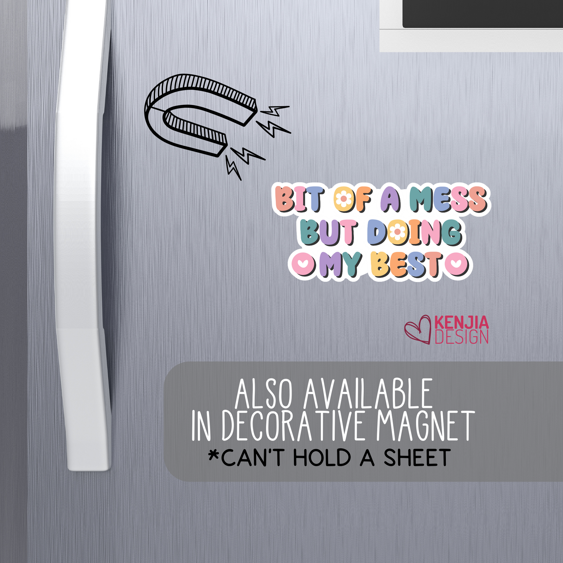 Bit of a Mess But Doing My Best Stickers and Magnets Cute Retro Mental Health Gifts, Self Care, Self Love Mom Sticker, Trendy Stickers