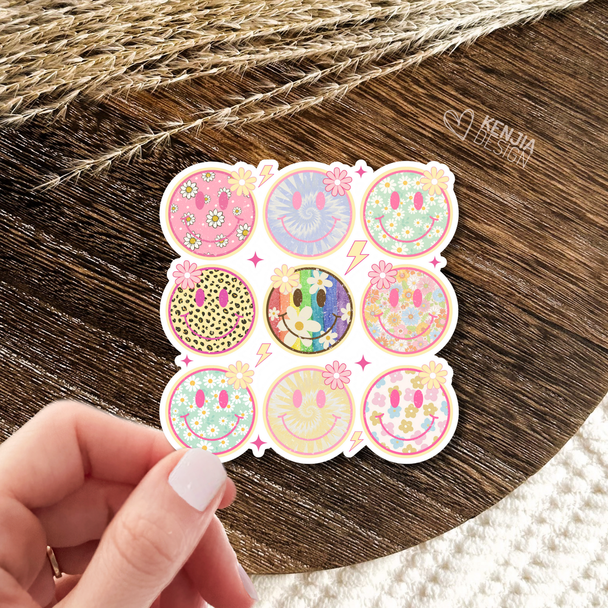 ♡ Smile Faces Stickers / Vintage Retro Groovy Stars Lightning Happy Face Sticker / Smiling Face Stickers for Kindle, Laptop / Trendy Popular Now