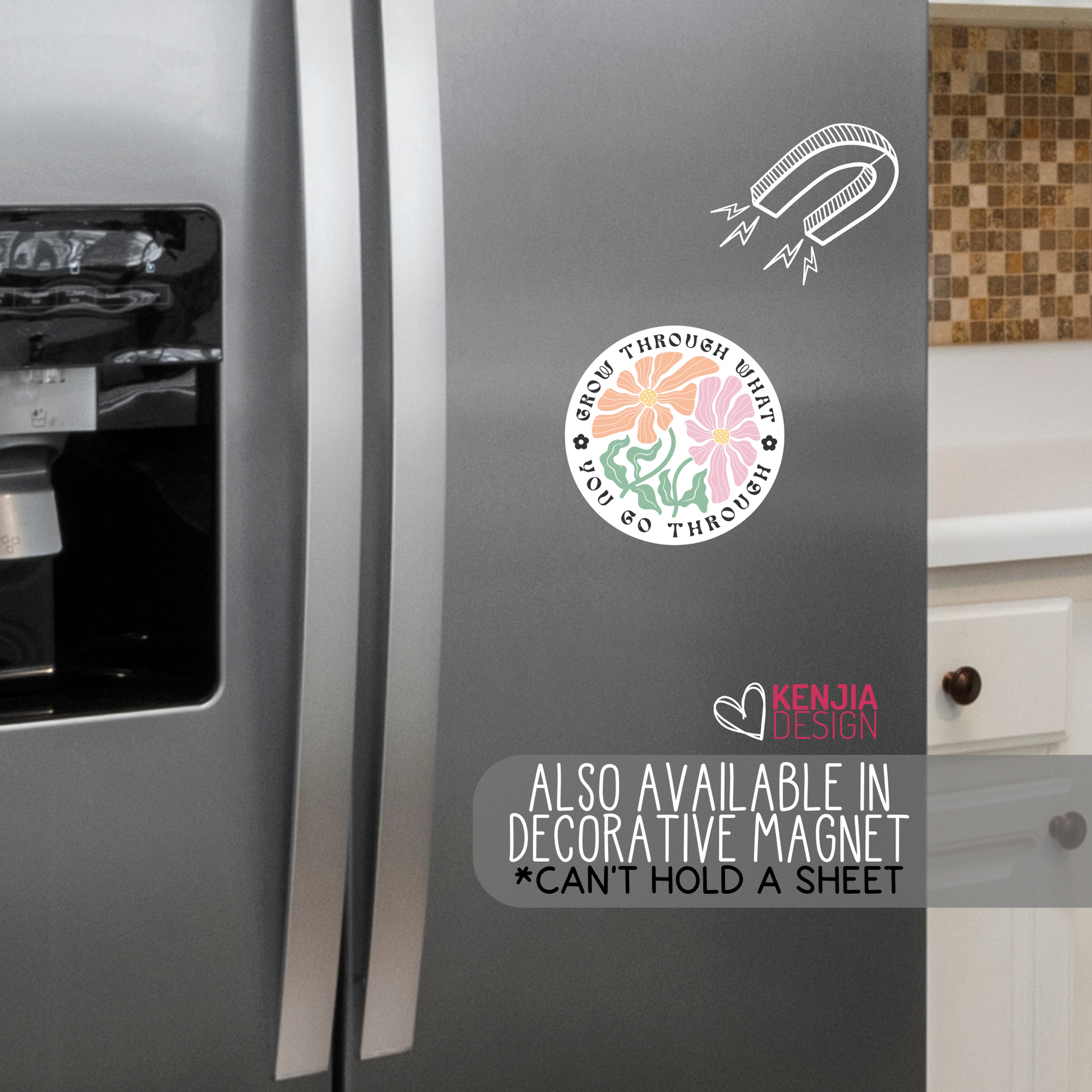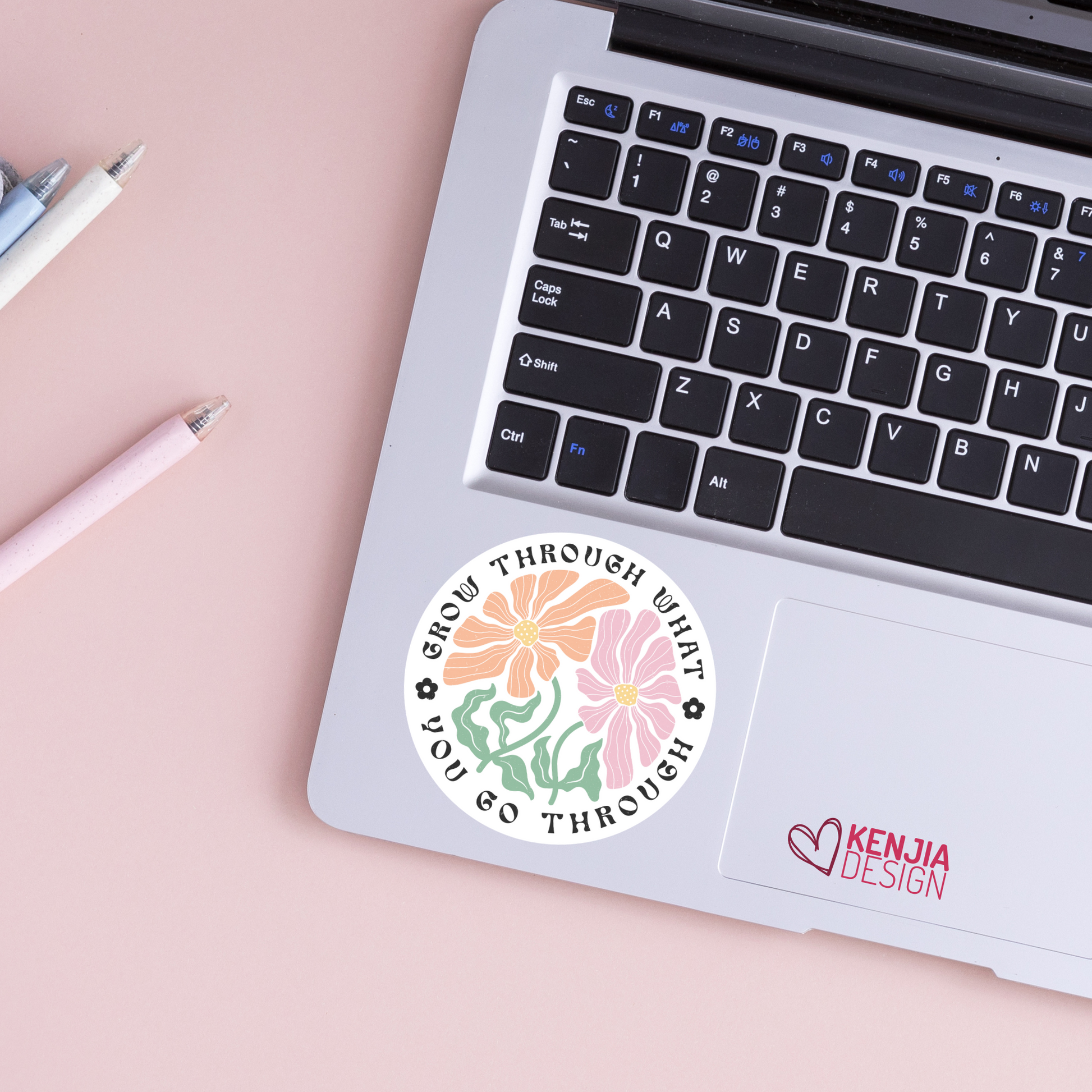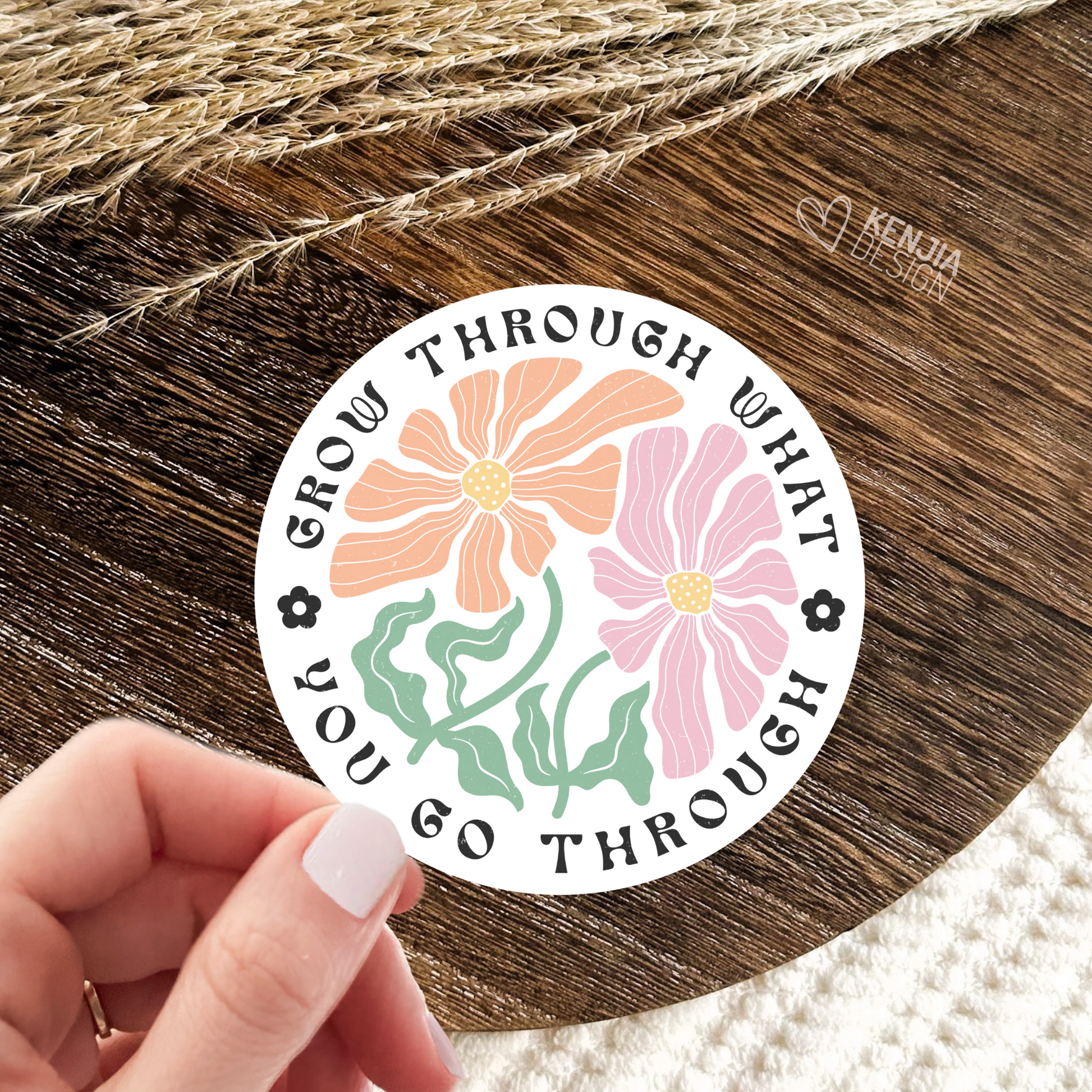 Grow Through What You Go Through Stickers / Floral Self Care Stickers / Mental Health Waterproof Vinyl Sticker / Retro Aesthetic Flowers