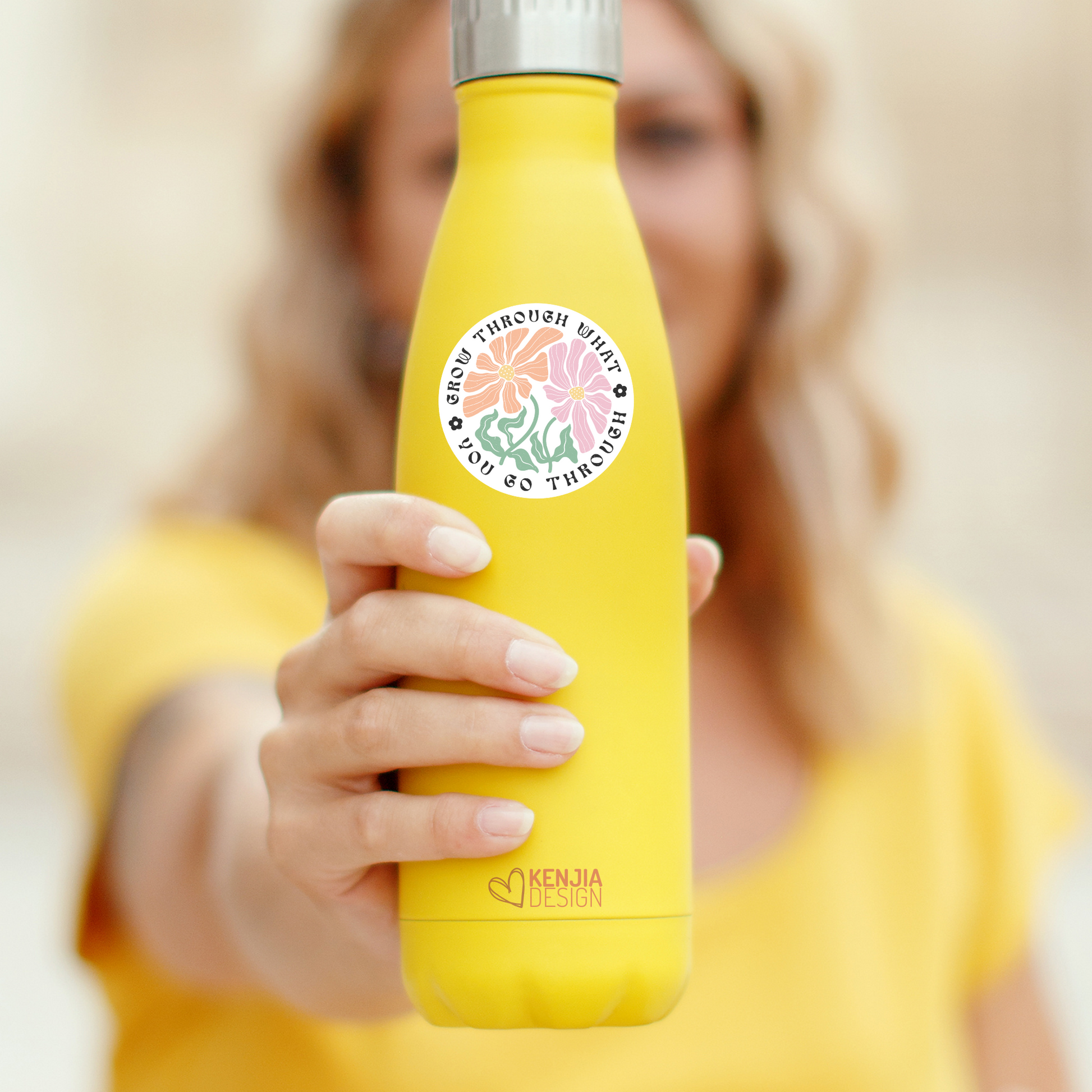 ♡ Grow Through What You Go Through Stickers / Self Care Stickers / Mental Health Waterproof Vinyl Sticker / Aesthetic Retro Floral Decal / Trendy Popular Now