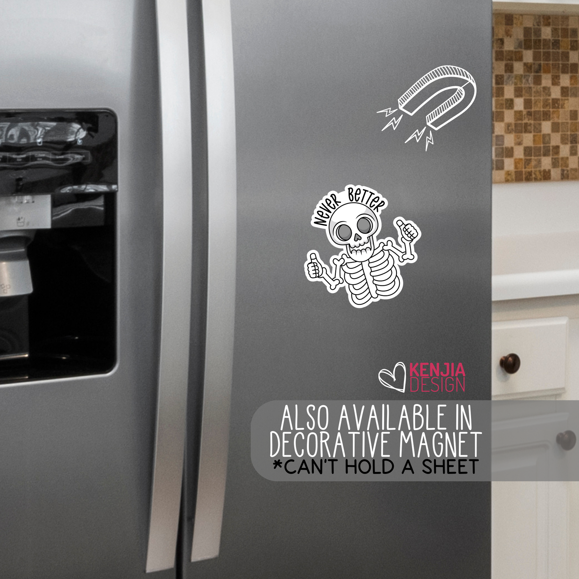 ♡ Never Better Skeleton Stickers & Fridge Magnets / Sacrastic Dead Inside Gifts / Funny Halloween Skull Mental Health Mom Stickers / Popular Now