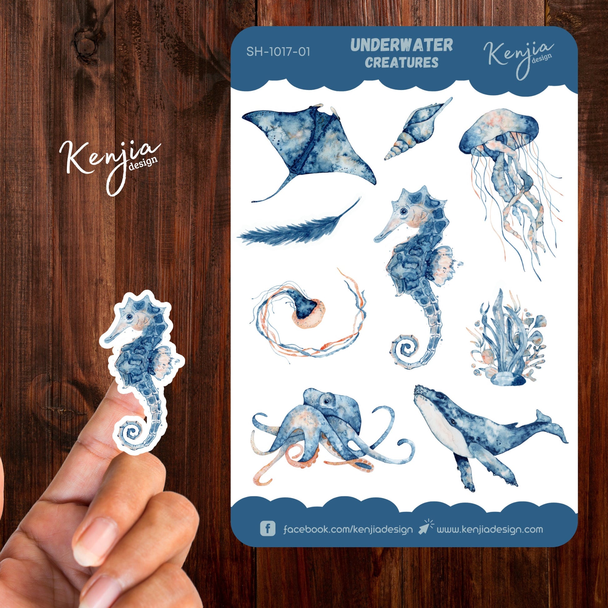 Underwater Creatures Sticker Sheet, Handmade cute Vinyl Sticker for gift, planner, book and laptop stickers (Jellyfish, Seahorse, octopus)