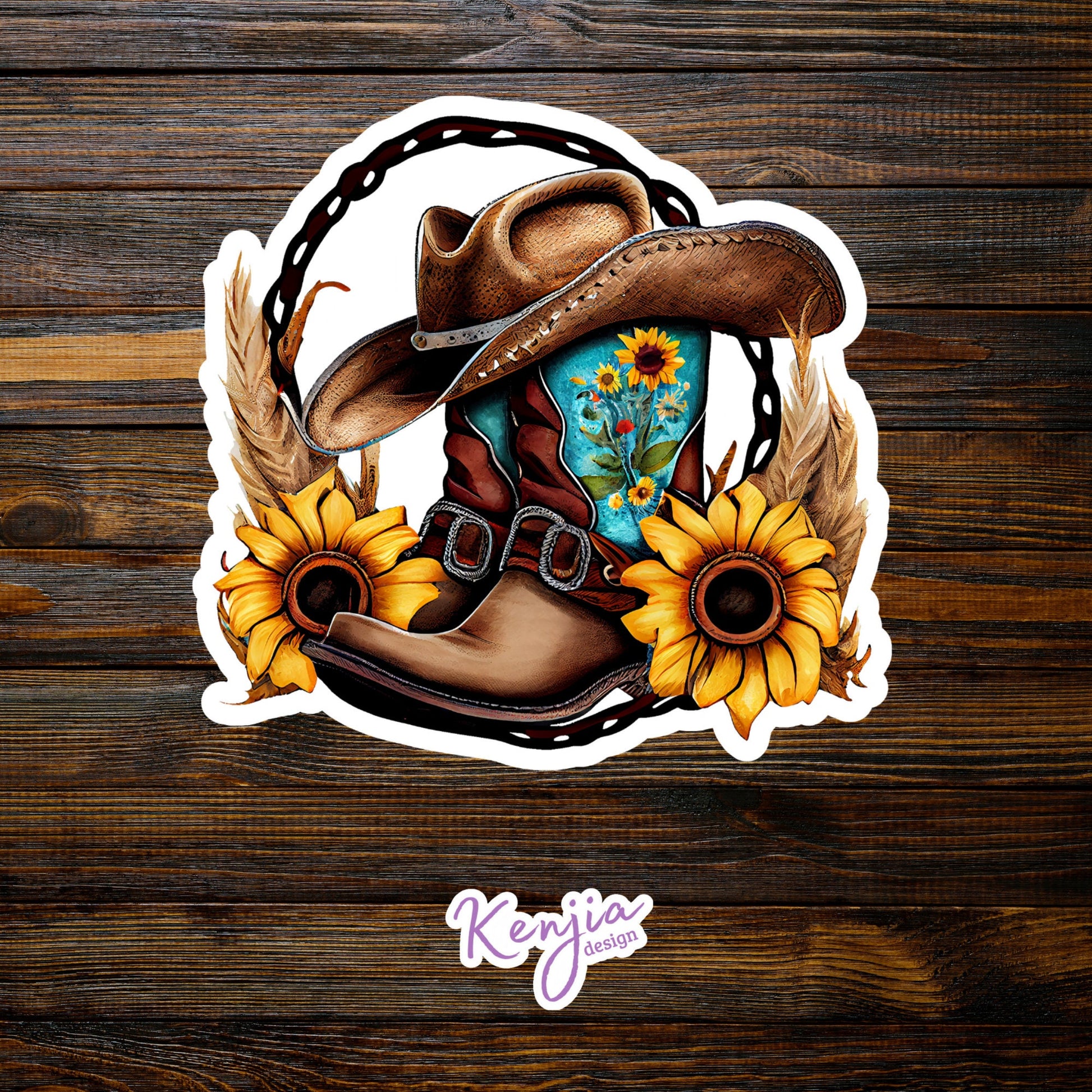 Western Horse Sticker For Water Bottle / Cute handmade Western Boots Sticker with Sunflowers and Watercolor Effect in Vinyl, for Laptop, Notebook, Walls, Water Bottle, Mug, Phone Case , Mirrors, Book, Scrapbooking or for your Journal, Card Making and more.